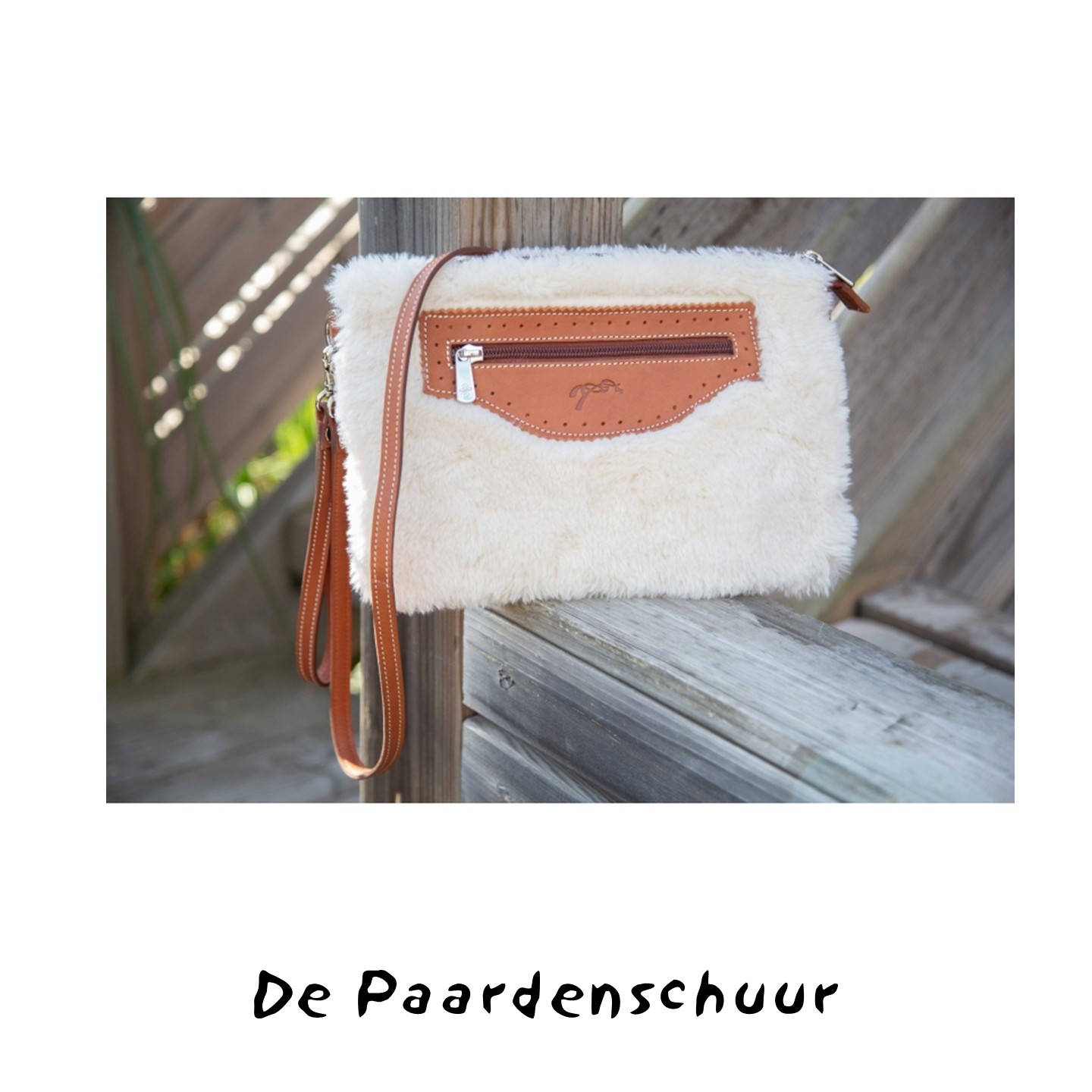 Afmetingen:18 cm hoog & 27 cm breed | 100% rundleer / ecru imitatiebont